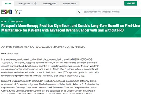 芦卡帕利的PFS改善在同源重组缺陷阳性与阴性亚组中均有体现。该发现由英国伦敦国王学院盖伊和圣托马斯NHS基金会信托及综合癌症中心的Rebecca S.Kristeleit博士及其同事于2025年10月18日在《肿瘤学年鉴》上发表,并同时于德国柏林举行的2025年欧洲肿瘤内科学会大会上以壁报形式展示。