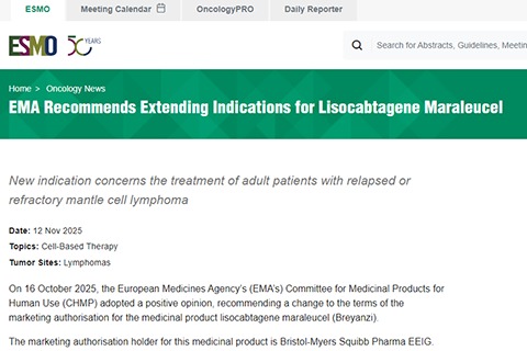 2025年10月16日,欧洲药品管理局的人用药品委员会通过了一项积极意见,建议修改药品利索卡基仑玛利欧细胞(商品名:Breyanzi)的上市许可条款。