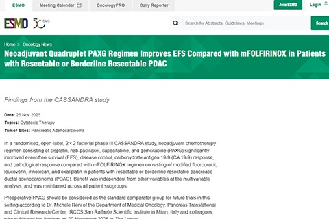 鉴于其疗效,术前PAXG方案应被视为未来在该领域临床试验中的标准对照方案。该研究结果由意大利米兰圣拉斐尔科学研究所IRCCS胰腺转化与临床研究中心的Michele Reni博士及其同事于2025年11月20日发表在《柳叶刀》。