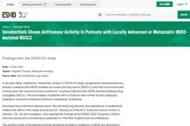 在一项开放标签、多中心、多队列的I/II期SOHO-01研究中,口服酪氨酸激酶抑制剂塞瓦贝替尼在携带HER2突变的非小细胞肺癌患者...【详情】